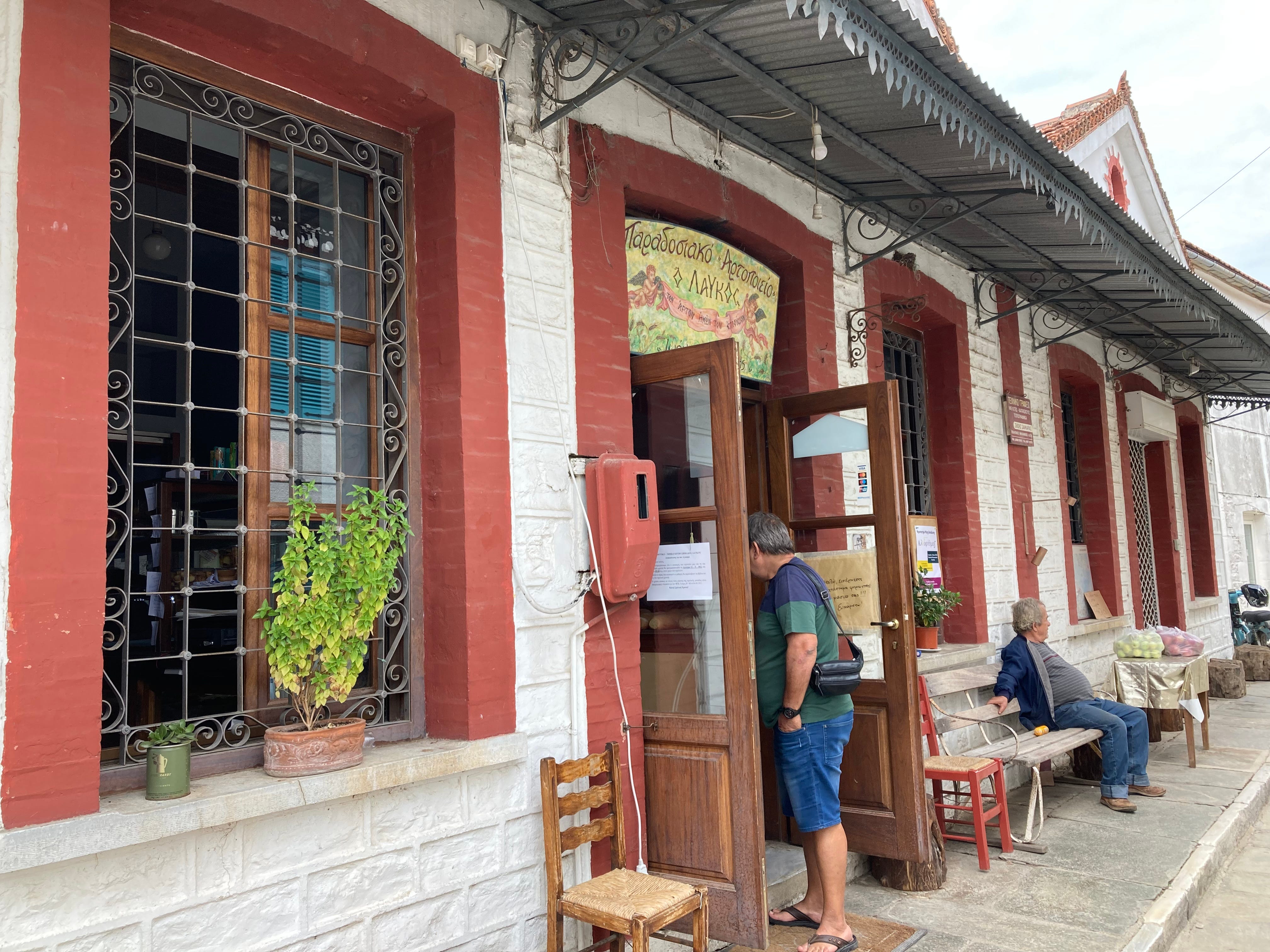 The best part of the hike is going to the traditional bakery, Ioannis Drositis, for fresh spanakopita, cheese pie, or lemon cream filled croissants. There are many other delectables to choose from, but these are my favorites.
